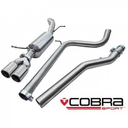 This Cobra Sport exhaust is made with T304 grade stainless steel, mandrel bent and Tig welded which will allow a smooth flow to maximize power gains. This is made in 2.5" / 63.5mm pipework and fits from the front pipe / catalyst backwards (Cat-back system) these parts replace the front box, centre and rear sections. This non-resonated system makes the system louder as it excludes the centre silencer and therefore, has a sportier exhaust note. This part is also available as a resonated version (including centre silencer) which is a quieter option. All relevant fittings and gaskets are supplied.